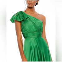 Mac Duggal - NWT Mac Duggal 67476 Pleated One Shoulder Chiffon Gown Emerald Green Sz 2 $398