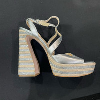 Take your every step in a timeless appeal by slipping into the Jessica Simpson™ Dosia sandals. • Faux leather upper. • Synthetic lining with a lightly padded footbed. • Adjustable buckle closure on the ankle strap. • Open square toe silhouette. • Curved straps on the foot. • Rhinestones and braided rope detailing on the heel and midsole. • Curved block heel. • Durable synthetic outsole. • Imported. • Measurements: • Heel Height: 4 % in • Platform Height: 1 ¾o in Size 10 New without box