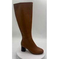 Sleek and timeless, the Racquel boot by Joie is a wardrobe essential. Made from soft genuine leather in a rich cognac brown, this knee-high silhouette pairs effortlessly with dresses, skirts, and skinny jeans. Leather Cognac In color Heel measures 2 1/4" Measures 17.5" tall Measures 14.5" top of boot circumference. New without box Sz 6 $398