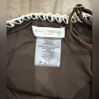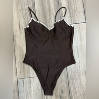 Details & care Blanket-stitch embroidery outlines the top of this one-piece swimsuit that gets extra support from underwires and three-part cups. • Pull-on style • Adjustable straps • Cheeky back coverage • 82% nylon, 18% spandex • Hand wash, dry flat • Imported • Item #10501394 Color: Beach Brown W/ Cream Crochet Size XL New without tags. Hygienic liner in place Retail $258