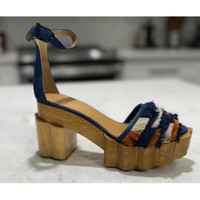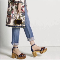 New! Tory Burch Alma Platform Wooden Block Heels Sz 6.5 $595