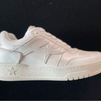 ASH Women’s Blake Sneakers White calf leather Blake sneakers, smooth grain, logo patch to the side, logo patch to the rear, branded leather insole, star stud detailing, star patch detail at the tongue, punch-hole detailing, round toe, front lace-up fastening, flat rubber sole Composition: Calf Leather, 100% Size: 40 (10) Color: White/ Off White Condition: Brand New, Never Worn Retail $298. NEW IN BOX!