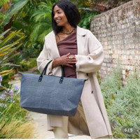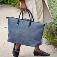 Color Blue and Black Occasion Travel, Casual, Workwear Size Large Hardware Color NA Bag Depth 7 in Size 22x14 Fabric Type Canvas Accessories Detachable Strap Department Women Tote Features Adjustable Strap, Inner Pockets, Lined, Detachable Strap Height 14.5" Double Handles Lining Material Fabric Exterior Material Canvas Brand Lulu Dharma