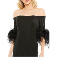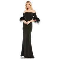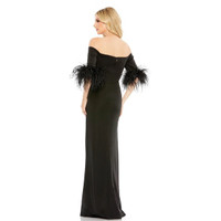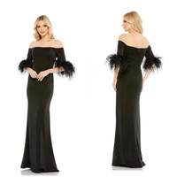 NWT Mac Duggal 11441 Feather Trim Off Shoulder Column Gown Black Sz 6 $498
