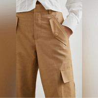 Not too fancy, not too casual, we'd say these cargos are just right all around. Made from a comfortable cotton twill and complete with a straight silhouette and - of course - cargo pockets, they're sure to be your go-to's all year long. 70% Cotton | 30% Linen. Size 8 Inseam Length: 31" Front Rise Length: 12 1/2 Waist: 15.75” New with tags $258