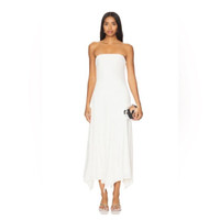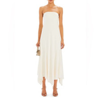 Description Strapless midi dress with asymmetrical hem. Shown here in Porcelain. 95% Viscose, 5% Spandex Made in China Model is 5'10" wearing size S Style No. 4034-17 Size Large New with tags $398
