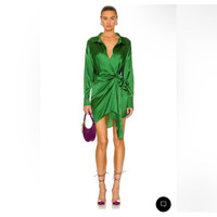 NWT Ser.o.ya Silk Demi Mini Dress in Amazon Green Small $495