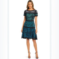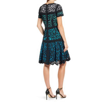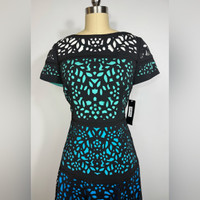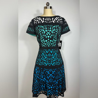 NWT Shani Colorblock Laser Cut Fit & Flare in Teal US 4 $384