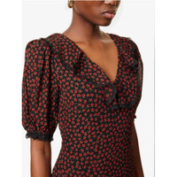 Reformation Evra Lace Trim Maxi Dress Product details • Reformation crepe midi dress • 100% viscose • Concealed zip fastening at side • Regular fit, V-neck, lace-trimmed collar, short puff sleeves, open back, all-over floral pattern, godet skirt, lace trims • Dry clean • True to size • Size US 4: length 52.5in / 134cm • Model is 5ft 10in/1.78m and wears a size US 4. • Lightweight, non-stretch Size 8 Measures approx 18" across the chest Measures 15.5" the waist New without tags Brand new! $278