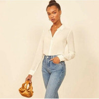 NWT Reformation Violet Semi-Sheer Button Front Blouse Shirt Ivory Medium $128