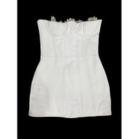 Retrofete AMBERLY LEATHER DRESS in Optic White Sz XS $698 The Amberly Dress is a strapless stunner designed to enhance your confidence while turning heads with its unique reptile leather texture, ultra flattering fit and alluring lace accents. Shown here in White. • 100% Reptile Leather • Made in India • Style No. SS24-8638 Neckline to hem measures approx 22.5" in length Size XS New with tags