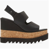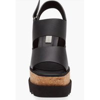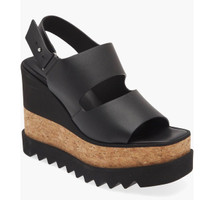 Stella McCartney Sneakelyse Platform Wedge Sandal Black Sz 9.5 $795 • Fits true to size, order your normal size A towering platform wedge from Stella's Elyse line lifts this quarter-strap sandal featuring a recycled-cork-wrapped platform and a thick sawtooth tread. • Adjustable slingback strap with pin closure • Synthetic upper, lining and sole • Made in Spain • Designer Shoes • 41/2" (114mm) heel; 2 3/4" platform Size 9+ (size 9.5) New in box, includes dustbag. $795