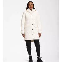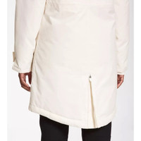 Seam-sealed, 2-layer DryVent fabric offers waterproof/breathable protection to keep you dry Durable water repellent (DWR) finish helps moisture bead up on the surface 600-fill-power recycled waterfowl down insulation in the body keeps you warm Heatseeker™ Eco 70% postconsumer recycled polyester insulation in the hood warms your head even in wet weather 3-piece, drawcord-adjustable hood features inside quilting for comfort Internal, adjustable waist cinch; adjustable snap cuff tabs High-low hem with zippered gusset on lower center-back seam Snap placket covers the center-front zipper 2 welt chest pockets; top-entry hand pockets with hidden-snap flap closures Logo patch on left hem Standard fit Imported. Best Use Casual Fabric 58% nylon/42% polyester Windproof Yes Waterproof Yes Type of Waterproofing 2-layer DryVent waterproof/breathable membrane Insulated Yes Insulation Type Down / Synthetic Blend Insulation Body: 600-fill-power recycled waterfowl down; hood: Heatseeker Eco polyester fibers (70% postconsumer recycled) Warmth Warmest Water-Resistant Down Yes Hood Yes Back Length Knee-length Back Length (in.) 38.5 inches Gender Women's Weight 2 lbs. 11 oz. Sustainability Contains recycled materials New with store tags Women’s size XL $350