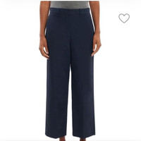 Details These Theory trousers feature a high-rise, straight-leg silhouette crafted of cotton twill. Side slant pockets and tailored pressed creases finish this classic style. • Belt loops • Side slant pockets • Back welt pockets • Zip fly, button closure • 100% cotton • Dry clean • Imported Black in color Size 0 Approximate measurements: Waist 13” Rise 10” Inseam 26” New with tags Retail $345