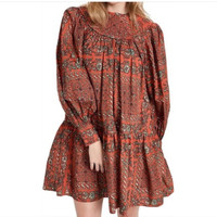 A short and breezy dress for those warmer days. 100% Cotton. Imported. Dry Clean Only. Fabric - Mid-weight, non-stretch poplin. Bandana print, Round neckline, Long puff sleeves with button cuffs, Pintuck details, Quilted yoke. Length - 35.5in / 90cm, from shoulder. Hook-and-eye and hidden zip at back. On-seam side pockets. Size 6 Measures 20" from pit to pit. New with tags $525