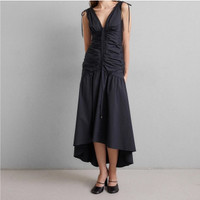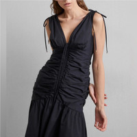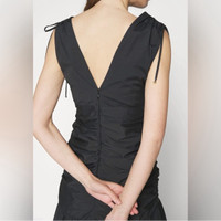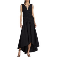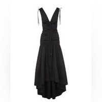 A cotton maxi dress that feels elevated enough for evening Delicate ties at sleeves and neckline complete the look You can easily dress the look down with flats, making this a versatile vacation look. Deep V-neck Flattering center ruching and asymmetrical hemline, Neckline: Low-cut v-neck Fastening: Zip Pattern: Plain Details: Bow, slip Outer fabric material: 97% cotton, 3% elastane Lining: 100% cotton Size 4 Approx measurement in inches(measured flat): armpit to armpit - 16 1/2 waist - 13 1/2 length - 49-57 New with partial hang tags Retail $598