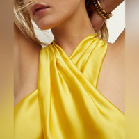 Channel refined polish in the Stewart top. Lustrous silk charmeuse is cut into a relaxed fit drape, giving the piece an effortless elegance. This style features a crisscross neckline and sleek interwoven back straps. Pair with heels and form-fitting denim for a chic night-on-the-town look. 55% Silk, 33% Viscose, 12% Spandex Length 14 1/4" Lined Professional dry-clean only Size 6 Pit to pit measures almost 19” New without tags Retail $348