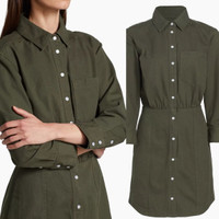 NWT Veronica Beard Keston Twill Mini-Shirtdress Sz 12 Army Green Sz 12 $398
