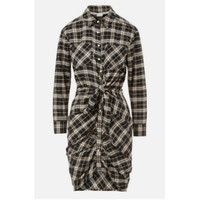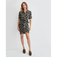 NWT Veronica Beard Sierra Plaid Flannel Ruched Shirt Dress Black Ecru Sz 2 $498