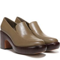 New! Vince Narisa Olive Green Leather Slip On Platform Loafers Shoes