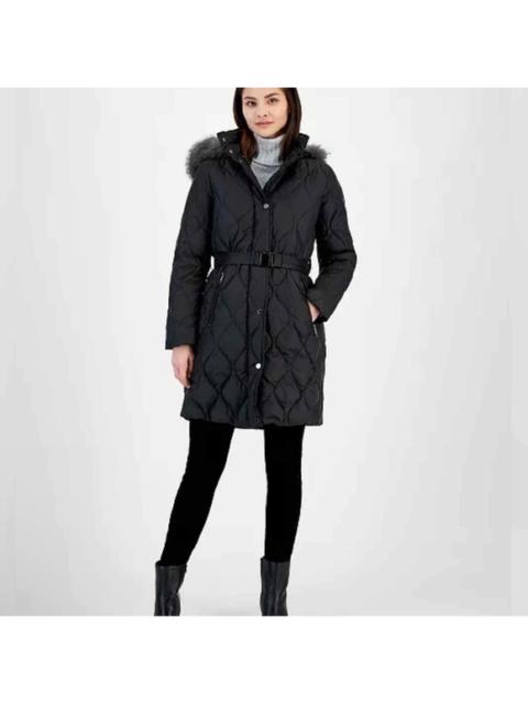 New! Michael Kors Black Quilted Down Faux Fur Long Puffer Coat Black Sz XS $360