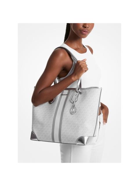 Michael Kors Eva Large Metallic Logo Stripe Tote in Optic White