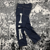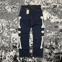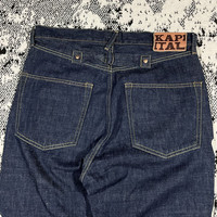 KAPITAL KOUNTRY OKAGILLY SKELETON BONES DENIM PANTS Mexican Tuxedo 5P EK-1013 COLOR : INDIGO SIZE : 34 CONDITION : GENTLY USED 9/10 VERY RARE PIECES WITH THIS CONDITION! Measurements : Waist : 45/90 cm Length : 112 cm Open leg : 20.5 Measurements taken by seller with item in hand. Measured with garment laid flat
