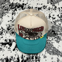 KAPITAL LIFE KAPRICCIOpt TRUCK CAP K2505XH535 COLOR : KINARI X TURQUOISE SIZE : FREE/ONE SIZE CONDITION : BRAND NEW VERY RARE PIECES ! Measurements taken by seller with item in hand. Measured with garment laid flat