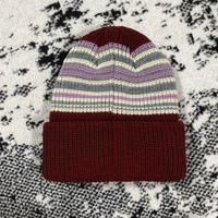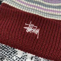 RARE STUSSY STRIPED CUFF BEANIE HAT - WINE - OS