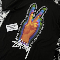 STUSSY PEACE SIGN TEE IN BLACK SIZE MEDIUM MADE IN MEXICO BRAND NEW WITH TAG / DEAD STOCK Please pay close attention to the measurements provided. FREE SHIPPING USA (REGULER MAIL 14-20 DAYS) EXPRESS SHIPPING ONLY FOR $25 ALL OVER THE WORLD ( 7-9 DAYS) FEEL FREE TO ASK AND OFFER YOUR REASONABLE PRICE. SURELY, I WILL CONSIDER FOR IT. BUY WITH CONFIDENT PLEASE TAKE A NOTE THAT ALL SALES ARE FINAL - NO CANCEL - NO RETURN - NO EXCHANGE.