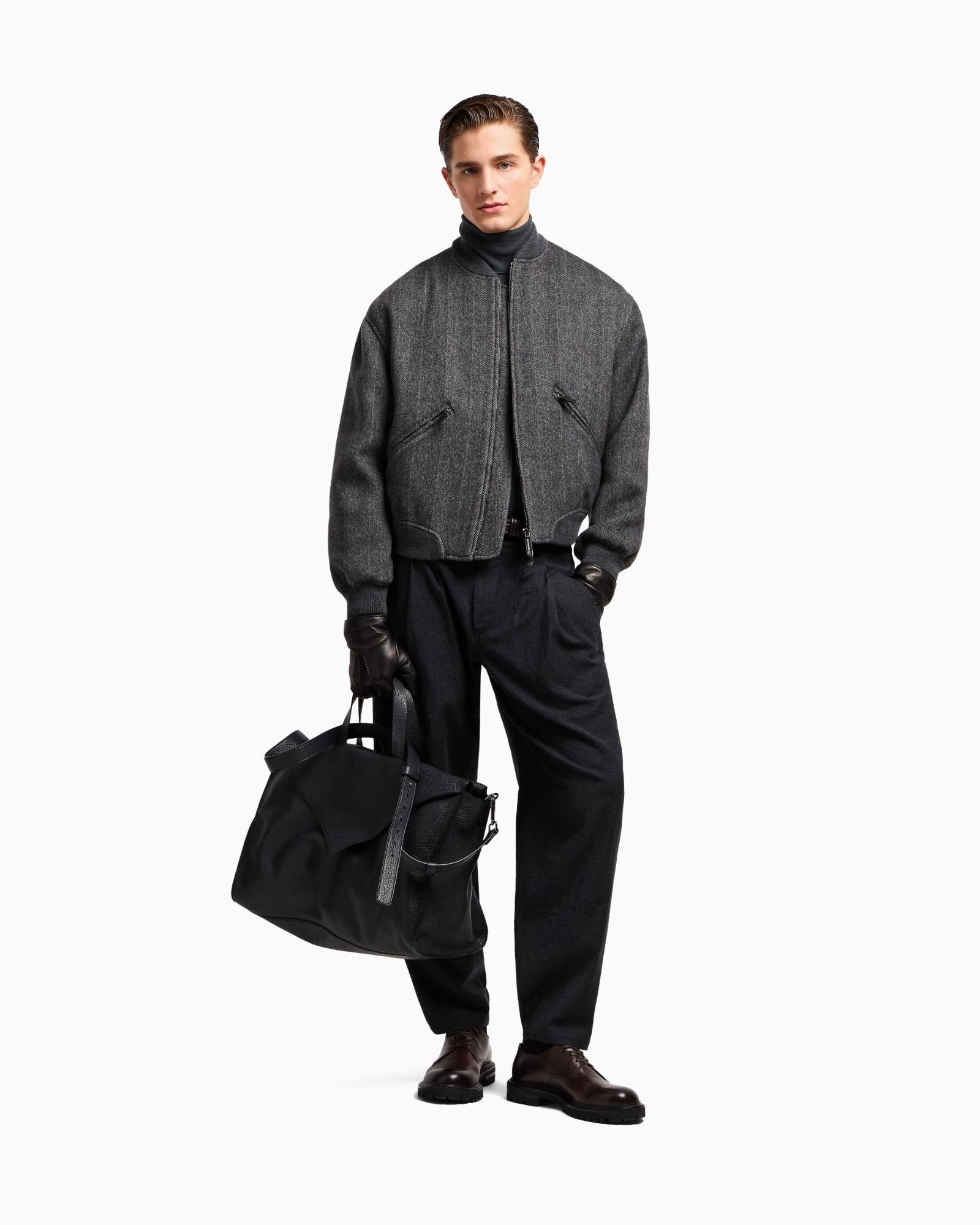 New with Tags Product Description Relaxed-fit, comfortable blouson made of cashmere cloth embellished with a chevron motif. Defined by the matching knit details, it features a zip fastening and two zipped side pockets; stylistic and functional details that accentuate the athletic yet sophisticated style of the piece. An item with warm, cosy padding, embellished with vertical quilting, designed for relaxed daywear looks. Composition Fabric: 100% cashmere Rib details: 89% virgin wool, 9% polyamide, 2% elastane Lining: 63% acetate, 37% viscose Details Bomber jacket collar Double-slider zip closure Two zipped, front slant pockets Leather pull tabs Knit details Satin lining Two buttoned inner pockets Padding Length: 64 cm Made in Italy Product code GM002267TE17630U8087