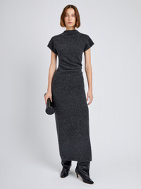 The Abie Dress in Clean Boiled Wool is knitted to a slim, ankle-length silhouette with a draped-effect waist. Finished with a mock neckline and wide short sleeves Details - Dark grey - Mock neckline - Wide short sleeves - Draped waist - Straight ankle-length hem - Slim fit - SKU: R2617298KW196021 Size & Fit - Model is 5'10'' with 31'' bust / 34'' hips. Wearing size Small