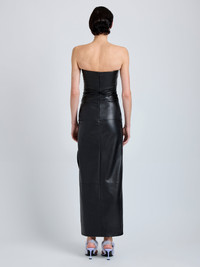 The Alonna Dress in Leather is cut to a slim, strapless silhouette, sculpted with a gathered side waist and finished with a cascading ruffle. Details - Black - Straight neckline - Side waist ruffle - Zipper fastening - Ankle-grazing hem - Slim silhouette - 100% sheepskin - SKU: R2623028LR287001 Care - 100% sheepskin - Spot clean only