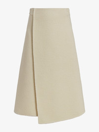 The Bodhi Skirt in Boucle Twill Suiting is cut to an A-line silhouette with a side-wrap front, finished with extended self-ties that fasten at the center back. Details - Off white - High waisted - Side-wrap front - Self-tie fastening - A-line silhouette - 61% virgin wool, 39% polyamide - SKU: R2615003AW162L102 Size & Fit - Model is 5'10.5'' with 28'' bust / 34.5'' hips. Wearing size 2 Care - 61% virgin wool, 39% polyamide - Dry clean only
