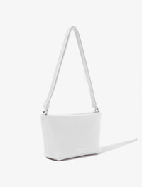 The Bond Bag is crafted from supple leather to a sleek rectangular shape with a wide zippered top. Designed with snaps on each side strap to adjust from shoulder to crossbody length with ease. Finished with a foil logo on the center front edge and embossed monogram on the back corner. Details - White - Rectangular shape - Collared zipper closure - Sliding shoulder strap snaps - Shoulder to crossbody function - Small side ring details - Fully lined - Front foil logo - Back Embossed monogram - 100% lamb leather - SKU: HB243071L016S100 Size & Fit - W: 27cm x H: 15cm x D: 7.5cm - Shoulder Drop Length: 49cm - Top Handle Length: 23.5cm Care - 100% lamb leather - Our bags are hand crafted using genuine leather. Variations in tone, marks or grain are common and should not be considered imperfections. Like all natural materials, leather reacts to the atmosphere. Humidity, rain, and sunlight can damage leather. Should a slight white coating appear on the surface of the leather, it can easily be removed using a dry cloth. Should the leather get wet, please absorb the water immediately with a dry cloth. Overexposure to sunlight can stain or alter the color of the leather.