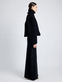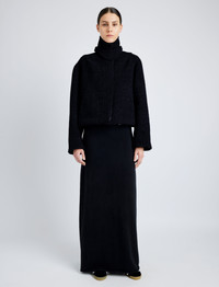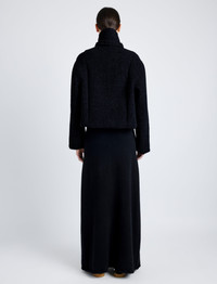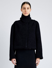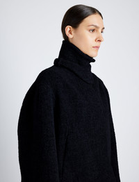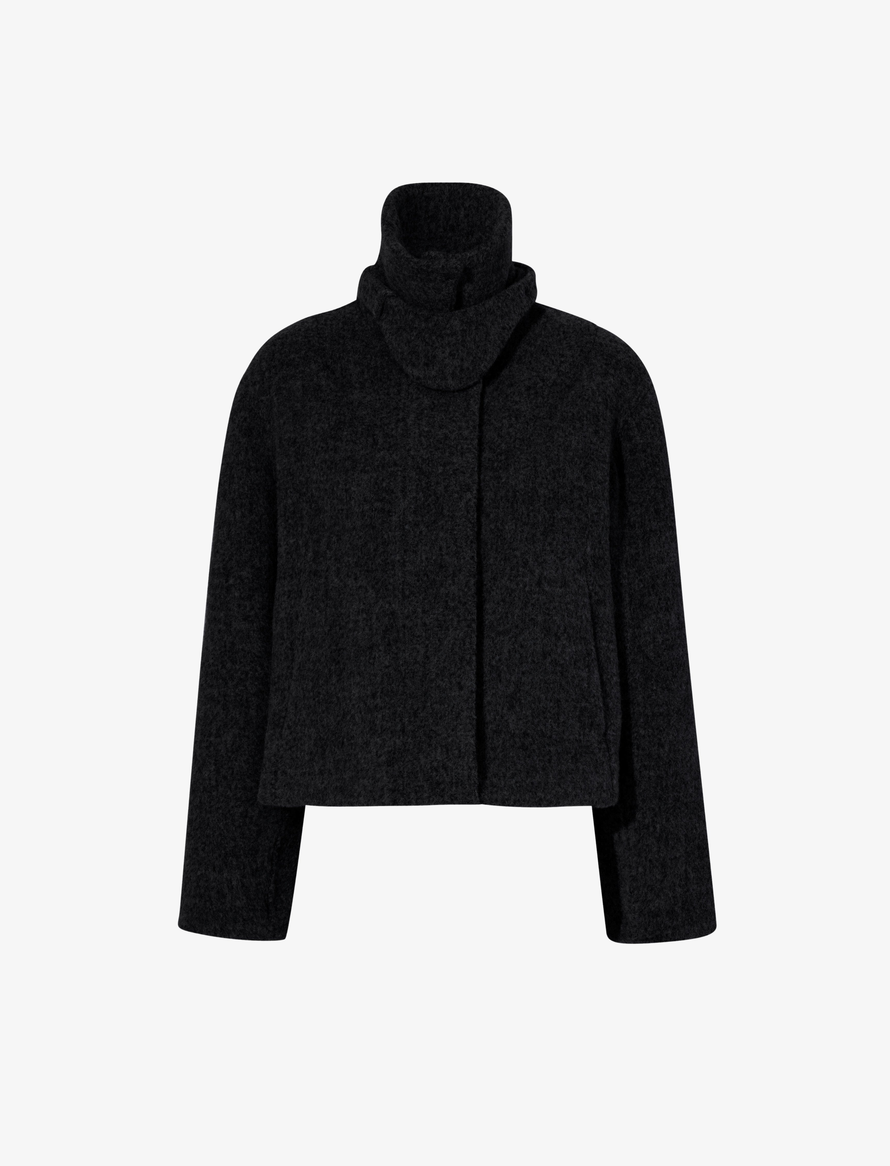 Details • Black • Storm guard • Long sleeves • Drop shoulder • Concealed fastening • Side slip pockets • Straight hem • Relaxed silhouette • 78% virgin wool, 12% polyamide, 10% cashmere • SKU: R2512004AW139001 Size & Fit Care • 78% virgin wool, 12% polyamide, 10% cashmere • Dry clean only