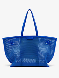 The Days Carryall in Mesh is crafted in a lightweight, mesh fabrication. Designed in a large carry-all silhouette, it features functional silver-tone side buckles that allow the corners of the bag to be folded inwards or worn loose for a relaxed finish. The tote has a magnetic top closure with an internal monogrammed zip pocket and two patch small patch pockets. Finished with a leather base panel and an exterior embossed logo. Details - Cobalt - Lightweight mesh - Carry-all silhouette - Two handles - Magnetic top closure - Side buckle details - Embossed logo - Zip pocket - Patch pockets - Silver-tone hardware - Bombay edges - Leather base panel - Bag/accents: 80% polyester, 20% calfskin - SKU: HB253096X506S437 Size & Fit - W: 59cm x H: 29.5cm x D: 22cm - Shoulder Drop Length: 27cm Care - Bag/accents: 80% polyester, 20% calfskin - Our bags are hand crafted using genuine leather. Variations in tone, marks or grain are common and should not be considered imperfections. Like all natural materials, leather reacts to the atmosphere. Humidity, rain, and sunlight can damage leather. Should a slight white coating appear on the surface of the leather, it can easily be removed using a dry cloth. Should the leather get wet, please absorb the water immediately with a dry cloth. Overexposure to sunlight can stain or alter the color of the leather.
