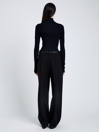 The Didi Top in Matte Viscose Velvet Stripe is knitted to a slim silhouette with a turtleneck, while alternating textural velvet stripes add subtle dimension. Details - Navy, black - Velvet stripes - Turtleneck - Long sleeves - Contrast button closures - Straight hem - Slim silhouette - 83% viscose, 17% polyester / 65% viscose, 35% nylon - SKU: R2617295KY407467 Size & Fit - Model is 5'10.5'' with 28'' bust / 34.5'' hips. Wearing size Small Care - 83% viscose, 17% polyester / 65% viscose, 35% nylon - Dry clean only