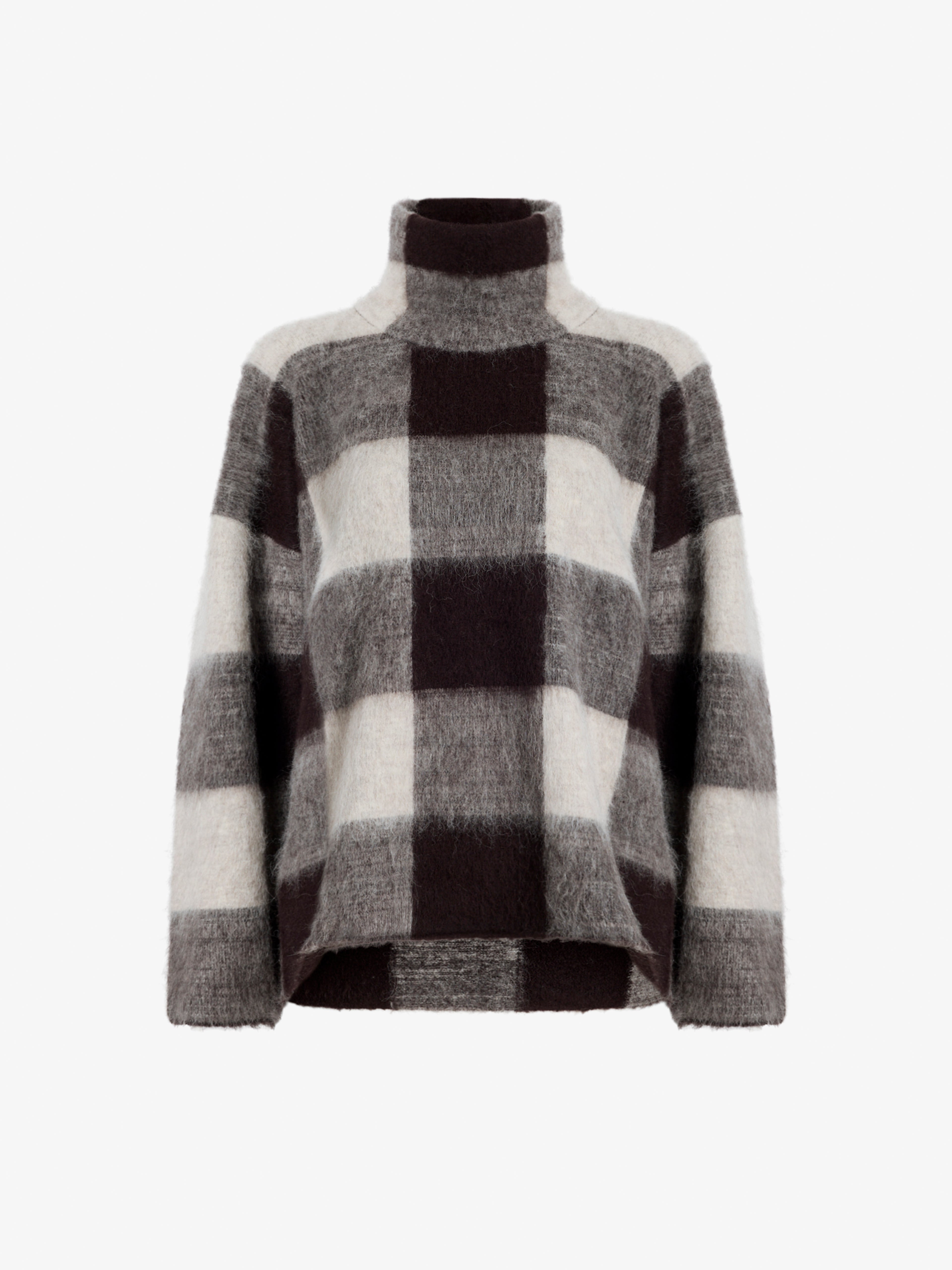 The Kai Top in Brushed Glenplaid Knit features a plush knit turtleneck silhouette with a brushed finish. Details - Brown multi - Brushed finish - Turtleneck - Long sleeves - Relaxed fit - 41% alpaca, 23% merino wool, 33% nylon, 3% elastane - SKU: R2547288KW192969 Size & Fit - Model is 5'10.5'' with 28'' bust / 34.5'' hips. Wearing size Small Care - 41% alpaca, 23% merino wool, 33% nylon, 3% elastane - Dry clean only