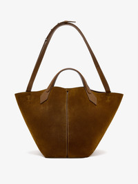 The Large Chelsea Tote is crafted in suede to a soft, unstructured silhouette. Detailed with two top handles, a detachable, adjustable shoulder strap and open top with a magnet tab closure. Details - Fern - Suede - Two top handles - Detachable, adjustable shoulder strap - Open top with self-tie fastening - Leather lined - Logo at front - Attached zip pouch - 100% calfskin - SKU: HB253112C012S243 Size & Fit - W: 47cm x H: 30cm x D: 25cm - Shoulder Strap: 33cm - Top Handle Length: 8.5cm Care - 100% calfskin - Our bags are hand crafted using genuine leather. Variations in tone, marks or grain are common and should not be considered imperfections. Like all natural materials, leather reacts to the atmosphere. Humidity, rain, and sunlight can damage leather. Should a slight white coating appear on the surface of the leather, it can easily be removed using a dry cloth. Should the leather get wet, please absorb the water immediately with a dry cloth. Overexposure to sunlight can stain or alter the color of the leather.