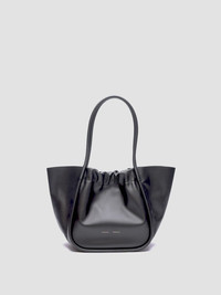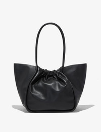 Designed for a soft, unstructured silhouette, the Large Ruched Tote features a ruched top and the signature gold-tone logo stamp. Complete with an internal leather zip pouch. Details • Black • Two handles • Open top with magnetic fastening • Gold-tone logo stamp • Unlined interior • Internal zip pouch • 100% leather • SKU: H01001C289P0000 Size & Fit • W: 50cm x H: 27cm x D: 19cm • Top Handle Height: 25cm Care • 100% leather • Our bags are hand crafted using genuine leather. Variations in tone, marks or grain are common and should not be considered imperfections. Like all natural materials, leather reacts to the atmosphere. Humidity, rain, and sunlight can damage leather. Should a slight white coating appear on the surface of the leather, it can easily be removed using a dry cloth. Should the leather get wet, please absorb the water immediately with a dry cloth. Overexposure to sunlight can stain or alter the color of the leather.