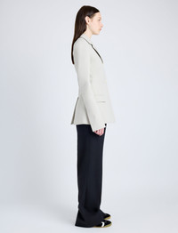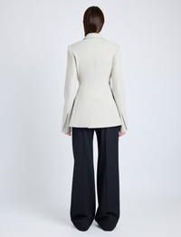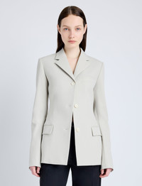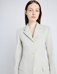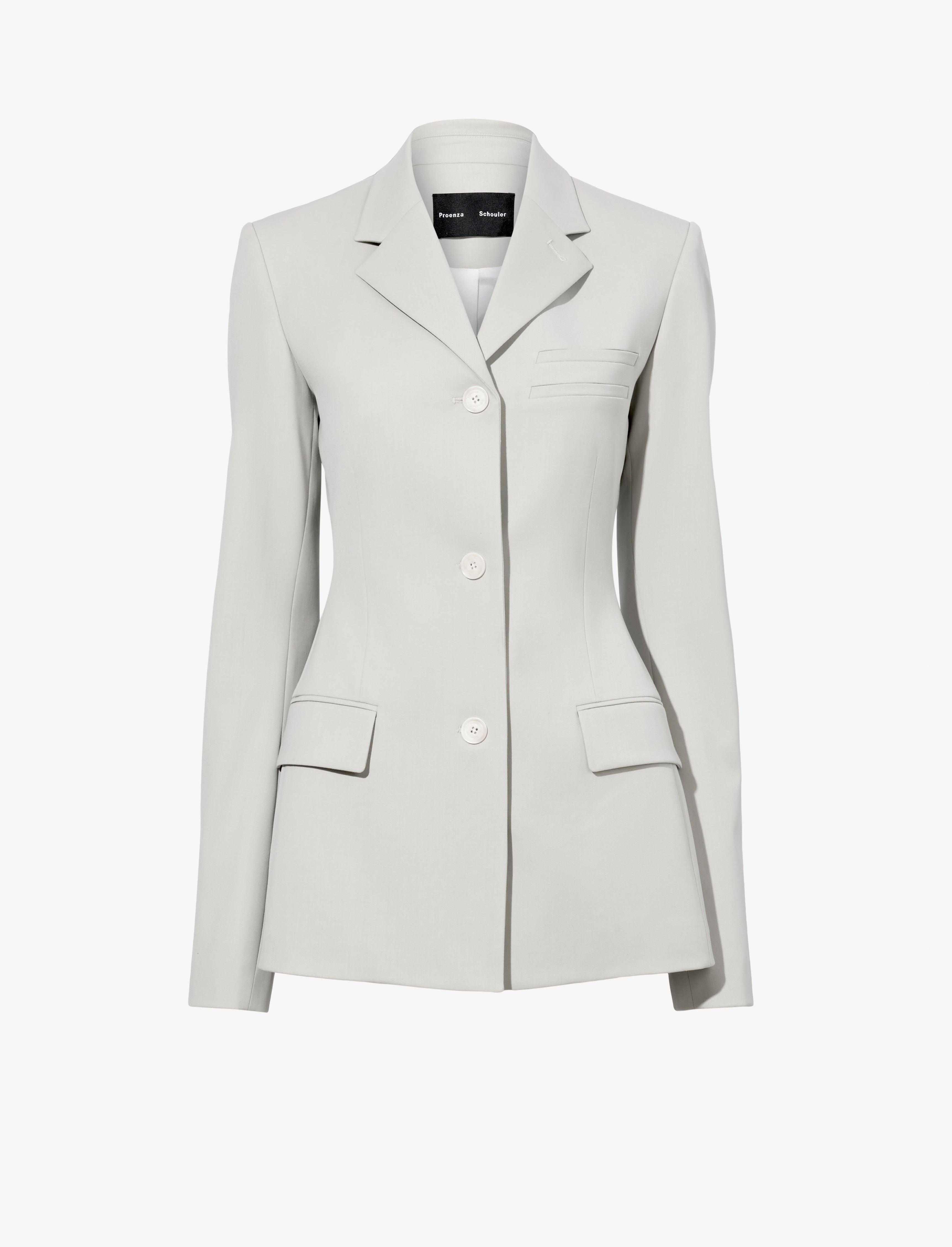 Details - Taupe - Notch collar - Long sleeves - Triple-button fastening - Faux pockets - Back vent - Fully lined - Straight hem - A-line silhouette - Slim fit - 76% virgin wool, 22% polyamide, 2% elastane - SKU: R2512005AW150253 Size & Fit - Model is 5'11'' with 31'' bust / 36'' hips. Wearing size 4 Care - 76% virgin wool, 22% polyamide, 2% elastane - Dry clean only