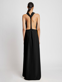 The Matte Crepe Backless Dress is cut in matte crepe with a fluid drape. Features a high mock neck and a single twisted strap at the center-back. Maxi-length hem with a single side split. Invisible side zip closure. Slim fit. 70% triacetate, 30% polyester. SKU: R2213004BY116001