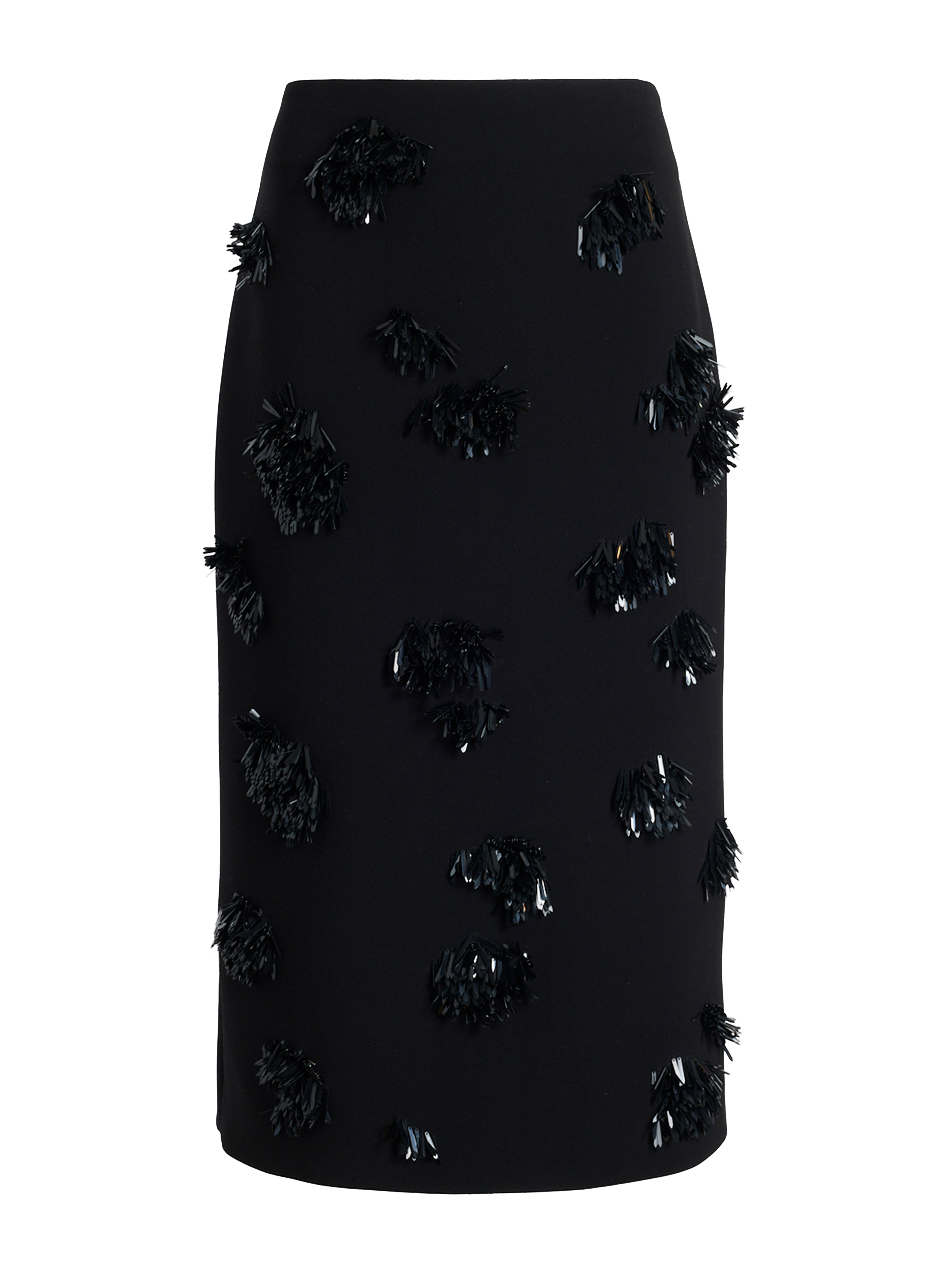 The Moira Skirt in Embroidered Compact Crepe is cut to a straight silhouette, with scattered sequins adding subtle textural detail. Finished with a back vent. Details - Black - Textured sequin - High waisted - Concealed zipper fastening - Back vent - Straight hem - Slim silhouette - 95% polyester, 5% polyurethane / 100% virgin wool - SKU: R2615004BY360EM001 Size & Fit - Model is 5'10.5'' with 28'' bust / 34.5'' hips. Wearing size 4 Care - 95% polyester, 5% polyurethane / 100% virgin wool - Dry clean only