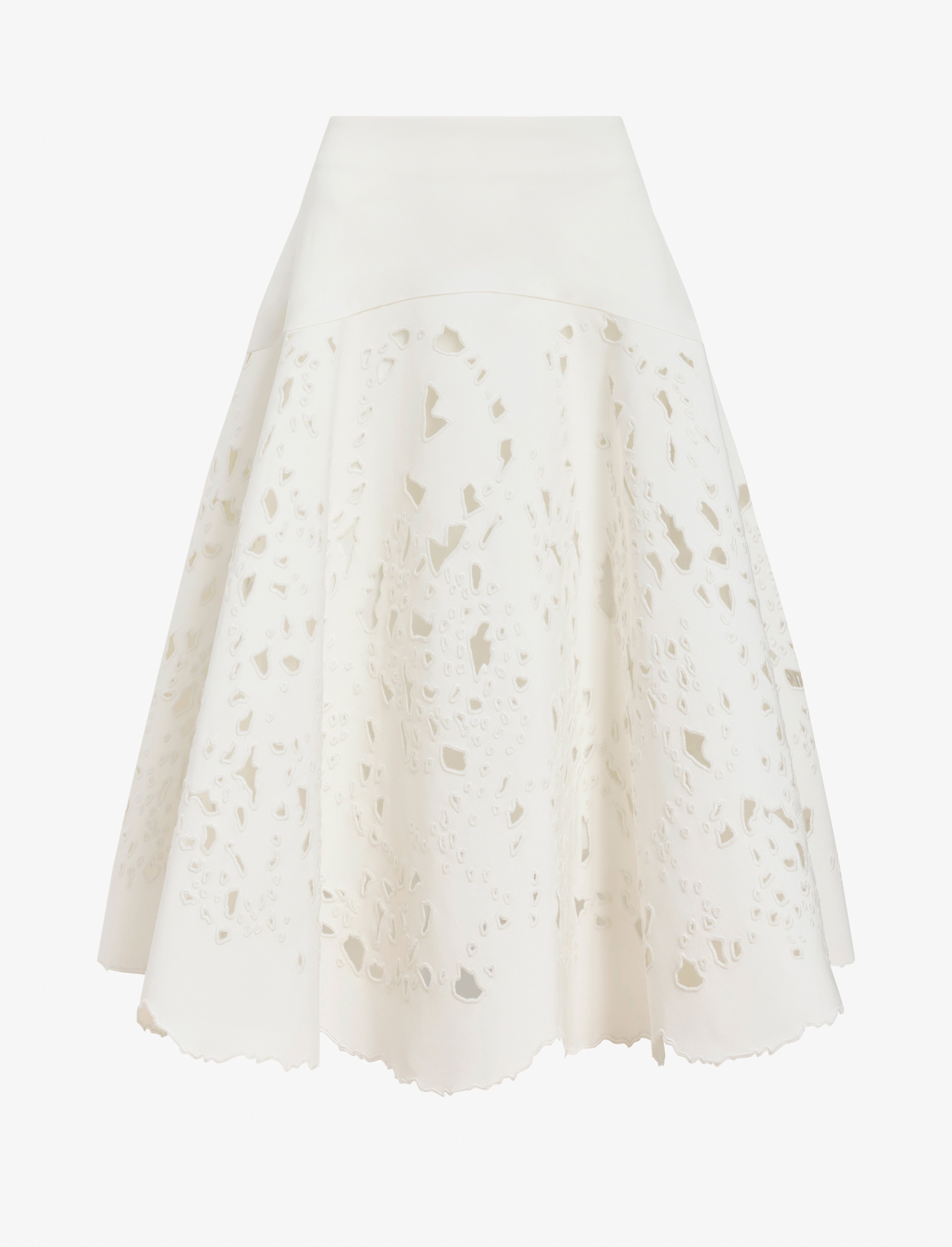 The Olene Skirt in Broderie Anglaise is crafted to a voluminous silhouette with a mid-rise fit and intricate art-inspired cutouts. Details - White - Mid-rise - Side zipper closure - Intricate cut-outs - Mid-length hem - Voluminous silhouette - Crinoline underlayer - Lined - Skirt: 84% polyamide, 16% elastane; Crinoline underlayer: 100% polyamide - SKU: R2535007BY256EM100 Size & Fit - Model is 5'11'' with 30'' bust / 35.5'' hips. Wearing size 5 Care - Skirt: 84% polyamide, 16% elastane; Crinoline underlayer: 100% polyamide - Dry clean only
