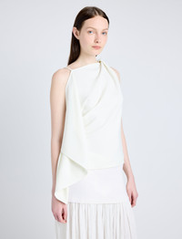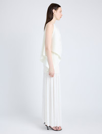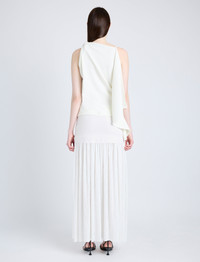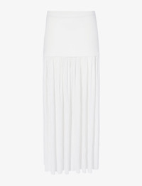 The Paige Skirt in Pleated Crepe Chiffon features a knitted upper panel paired with a sheer, texturally pleated lower skirt that adds movement to the silhouette. Details - Ivory - Knit upper panel - Sheer textured lower skirt - Ankle-length hem - Slim fit - 100% polyester - SKU: R2515004BY328107 Size & Fit - Model is 5'11'' with 31'' bust / 36'' hips. Wearing size 4 Care - 100% polyester - Dry clean only