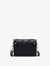 Inspired by traditional workwear satchels, the iconic PS1 family is rooted in function and ease. The PS1 Mini Crossbody Bag is crafted in soft lambskin leather and is secured by a signature silver-tone tab closure and belted straps. Features an interior compartment with a durable canvas lining and logo embossed leather patch pocket. Includes a removable, adjustable shoulder strap with hand-painted edges and an enameled logo tag. Lambskin. Made in Italy. The PS1 family consists of a Micro, Mini Crossbody, Tiny, Medium, and Large. The PS1 Mini Crossbody is the second smallest body of the family. L: 8” D: 3” H: 6” Strap: 45” / 22” Drop SKU: H00338L001P0000