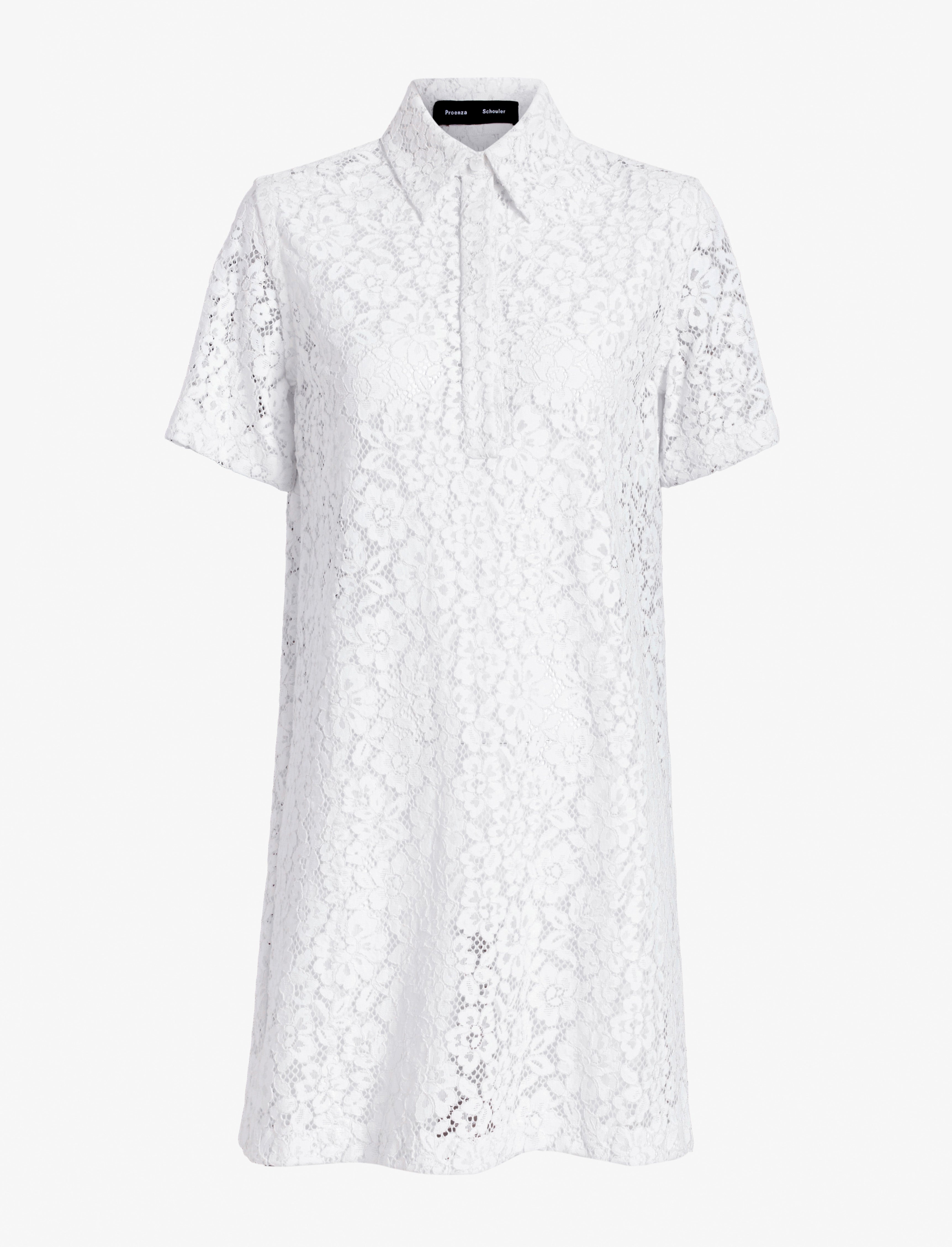 The Rainer Dress in Stretch Lace is crafted from semi-sheer lace to a shift silhouette with polo detailing at the neckline. Details - Off white - Semi sheer lace - Point collar - V-cut neckline - Short sleeves - Slip included - Mini-length - Straight hem - Shift silhouette - 55% polyamide, 34% viscose, 11% elastane - SKU: R2513026FY020S101 Care - 55% polyamide, 34% viscose, 11% elastane - Dry clean only