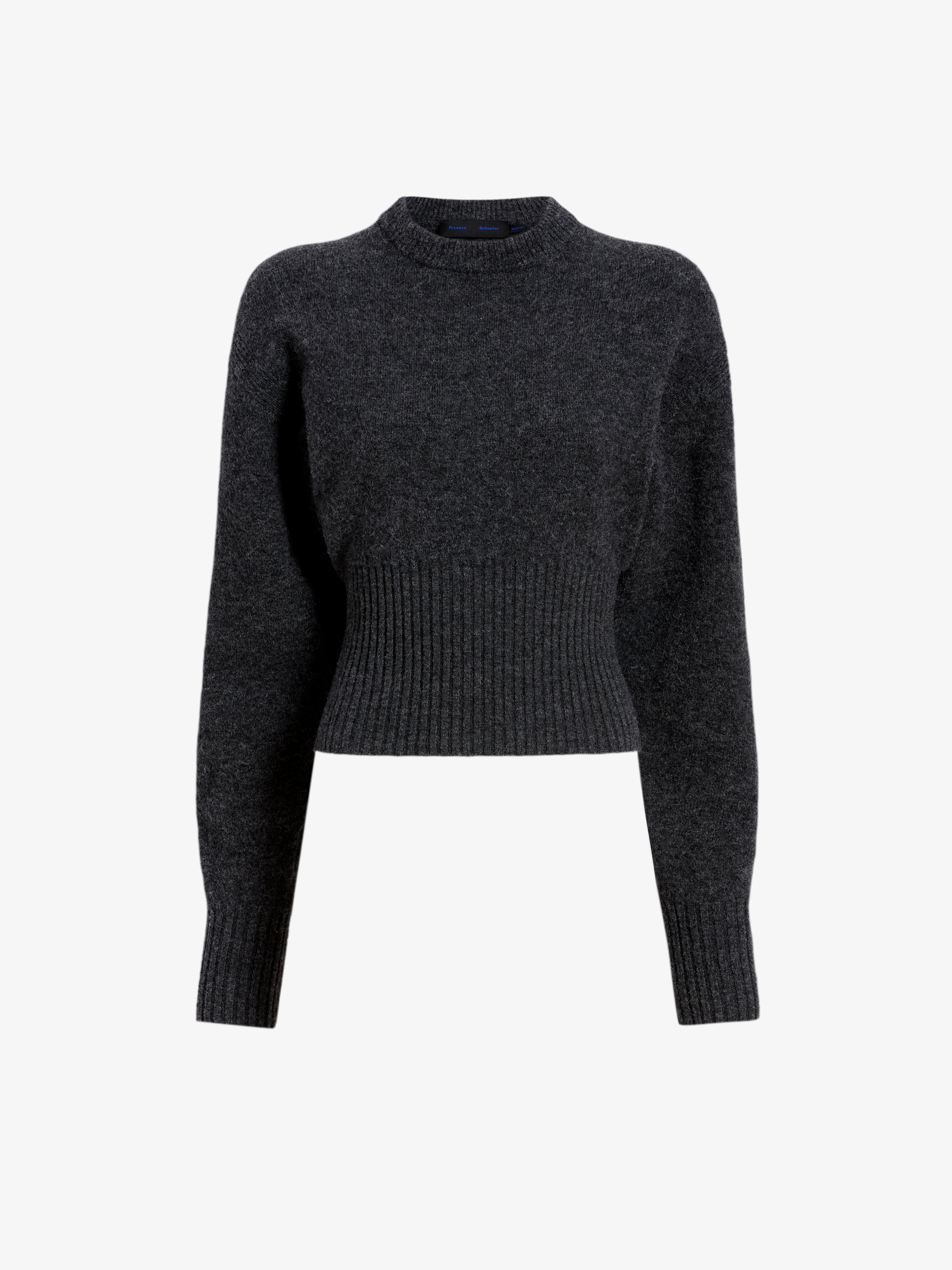 The Randi Top in Boiled Wool is knitted to a crew neck silhouette with softly ballooned sleeves and a sculpted ribbed-knit waist. Details - Dark grey - Crew neckline - Long balloon sleeves - Ribbed-knit trims - Straight hem - Slim fit - 44% extrafine merino wool, 29% alpaca, 25% polyamide, 2% elastane - SKU: R2547290KW193021 Size & Fit - Model is 5'10.5'' with 28'' bust / 34.5'' hips. Wearing size Small Care - 44% extrafine merino wool, 29% alpaca, 25% polyamide, 2% elastane - Dry clean only