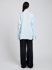 The Ricky Top in Viscose Gabardine is cut to a relaxed silhouette, featuring concealed button-front closures and a necktie detail. Details - Sky - Mock neckline - Neck tie - Button fastenings - Relaxed silhouette - 100% viscose - SKU: R2614004BY159450 Size & Fit - Model is 5'10.5'' with 28'' bust / 34.5'' hips. Wearing size 4 Care - 100% viscose - Dry clean only